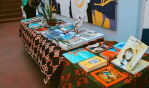 Feira de livros durante todo o evento.