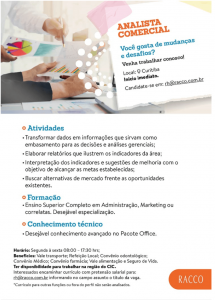RACCO COSMÉTICOS CONTRATA ANALISTA COMERCIAL / CURITIBA INDUSTRIAL DE CURITIBA