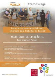 Grupo Foxlux contrata Assistente de Criação Jr. Vaga para trabalhar em Pinhais-PR.