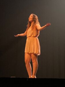 Na foto a artista curitibana Negabi, durante o festival apresenta a Cena Visualínguas.