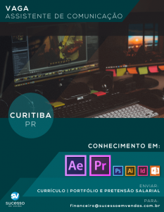 – Habilidades: Boa comunicação interpessoal e escrita, trabalho em equipe, pró-atividade, busca por crescimento/desenvolvimento profissional, gestão de tempo/prazos, organização, foco, visão integrada de processos, flexibilidade, dinamismo, conectado em novas tendências.