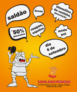 A nossa nova parceira, a Loja da Pulgas, fica na Rua Pe Paulo Warkocz, 29, CIC / Orleans, Curitiba – próximo ao viaduto e ao cemitério do Orleans. Vale a pena conhecer! A loja tem brechó de roupas, móveis usados, livros, discos de vinil, brinquedos antigos, moda pet e mais um monte de coisas bacanas! Aproveite que a Loja das Pulgas é boa em dar descontos e vá conhecê-la!