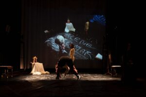 Na foto de Giovanna Branco, cena do espetáculo “Derretendo Satelites” da Cia Narratos, um dos espetáculos selecionados para a 4ª Mostra Clau.