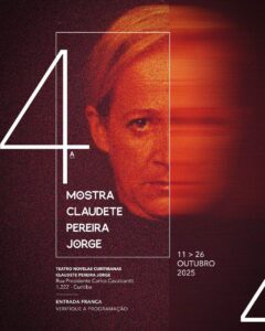 4ª Mostra Claudete Pereira Jorge Data: 11 a 26 de outubro de 2025 Local: Teatro Novelas Curitibanas – Claudete Pereira Jorge (Rua Presidente Carlos Cavalcanti, 1222 – São Francisco, Curitiba) Ingresso: Entrada gratuita (retirada 1h antes, no local) Acessibilidade: sessões com Libras e audiodescrição Instagram: @mostraclaudete