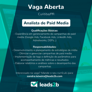 Leads2b contrata Analista de Paid Media. Vaga para trabalhar em Curitiba.