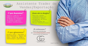 requisitos: Superior Completo em Comércio Exterior ou áreas afins. Necessário conhecimento intermediário/avançado em inglês e experiência com exportação de produtos.